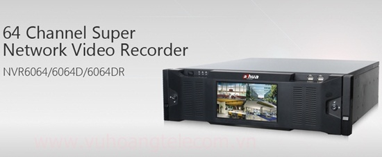 Đầu ghi hình IP DAHUA NVR6064DR có 64 kênh IP - HD 1080P, chuẩn nén hình H.264/MJPEG, hỗ trợ HDMI, VGA, hỗ trợ 16 hot-swap SATA HDDs, băng thông đầu vào Max 192Mbps kết nối full 32 camera 1080P, hiển thị độ phân giải ghi hình đến 32ch@1080P, 64ch@720P, 64ch@D1, hỗ trợ ONVIF Version 2.2 kết nối nhiều hãng camera Dahua, Arecont Vision, AXIS, Bosch, Brickcom, Canon, CP Plus, Dynacolor, Honeywell, Panasonic, Pelco, Samsung, Sanyo, Sony, Videosec, Vivotech,... xem qua mạng dễ dàng, giám sát: IE, CHROME, CMS, Android, iOS... Chế độ xem lại các kênh đồng thời.