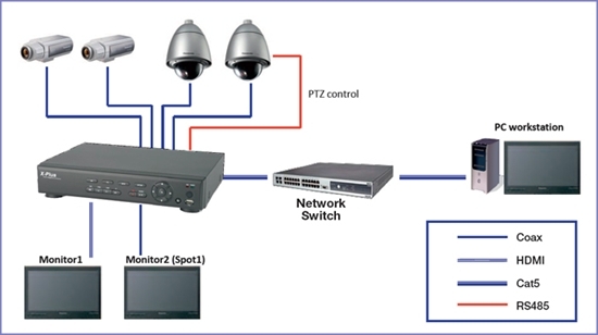 - Cho phép điều khiển Camera từ đầu ghi : Pan/Tilt, Zoom, Focus, Preset, Tour, Auto pan.